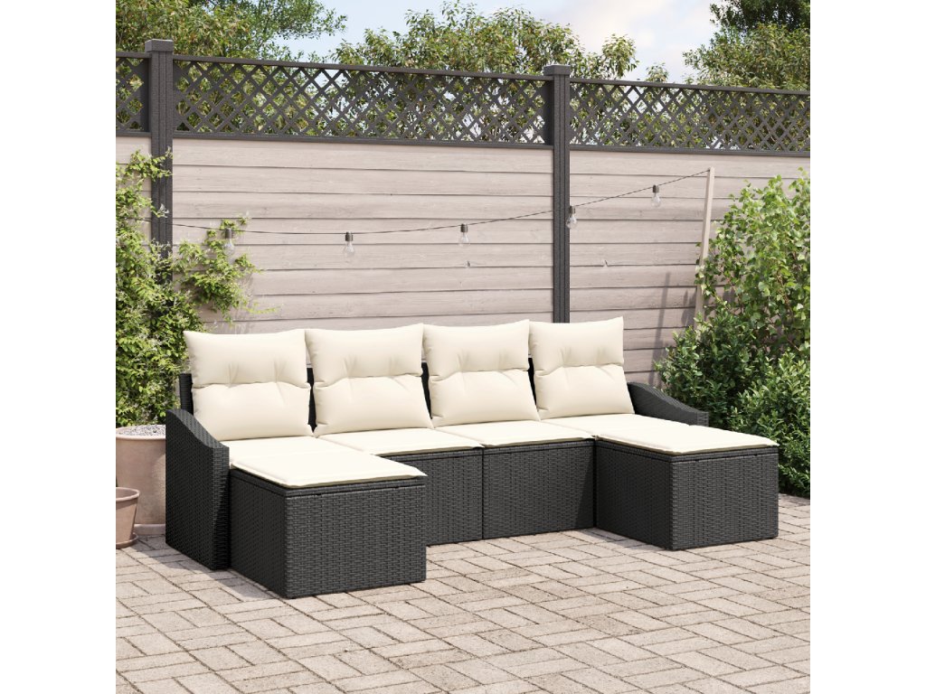 Zahradní jídelní souprava s polštářem 6 pcs Černá a krémová