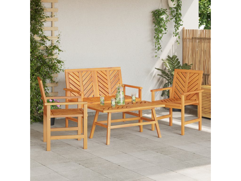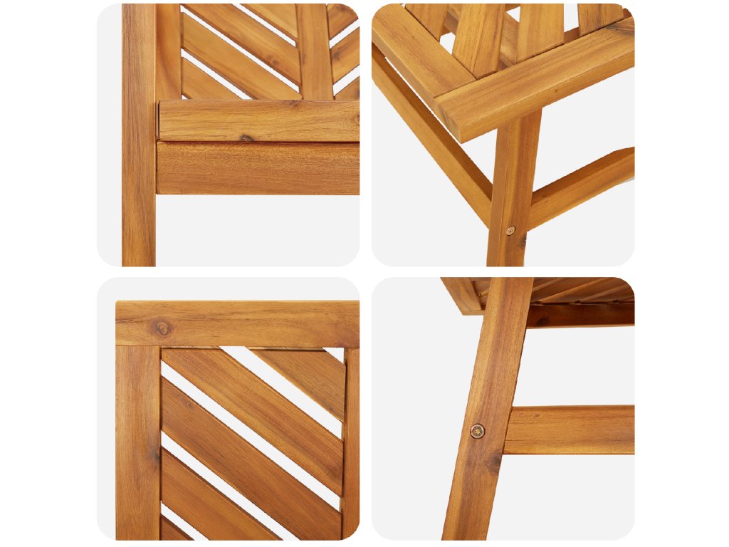 Kvalitní akáciové dřevo: Tato lounge set je vyrobena z pevného akáciového dřeva, což jí dává přírodní vzhled, který se hodí do každé zahrady nebo terasy. Je dostatečně odolná na to, aby zvládla povětrnostní podmínky, což z ní dělá skvélou volbu pro venkovní zábavu. Kompletní venkovní sada: Obsahuje sezení a odpovídající stůl, takže tvůj venkovní prostor bude vypadat skvěle. Je navržena s ohledem na pohodlí a praktičnost, ideální pro všechny druhy společenských akcí nebo soukromých venkovních chvilek. Jednoduchý moderní styl: Čisté linie a minimum ruchu dělají tuto zahradní sadu elegantní. Barvy a design perfektně zapadnou do jakékoli stylové venkovní dekorace a zlepší vzhled tvého prostoru. Silné nohy: Každý kus má robustní nohy, které zajišťují stabilitu na různých površích. Tyto nohy přispívají k rustikálnímu kouzlu lounge setu, takže je stabilní i při používání. Snadná montáž: Sestavení sady je jednoduché s dvěma lidmi a šroubovákem, což ti usnadní vylepšit tvou zahradu. Stabilita a dlouhá životnost jsou jeho základem, takže máš klid na duši, zatímco údržba je hračkou.- Barva: Hnědá