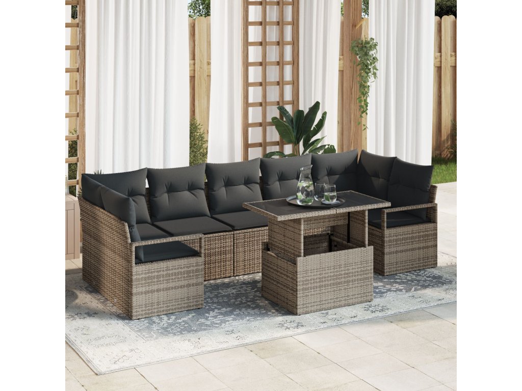 Sada zahradních pohovek s polštářem 8 pcs Šedá polyratan