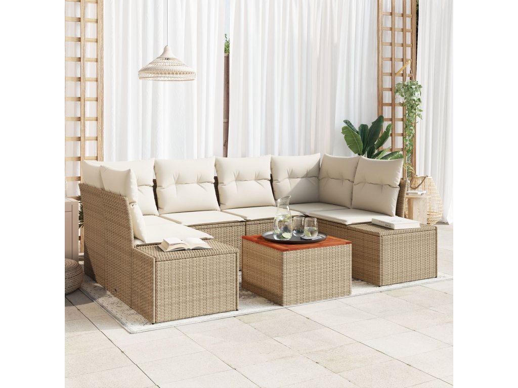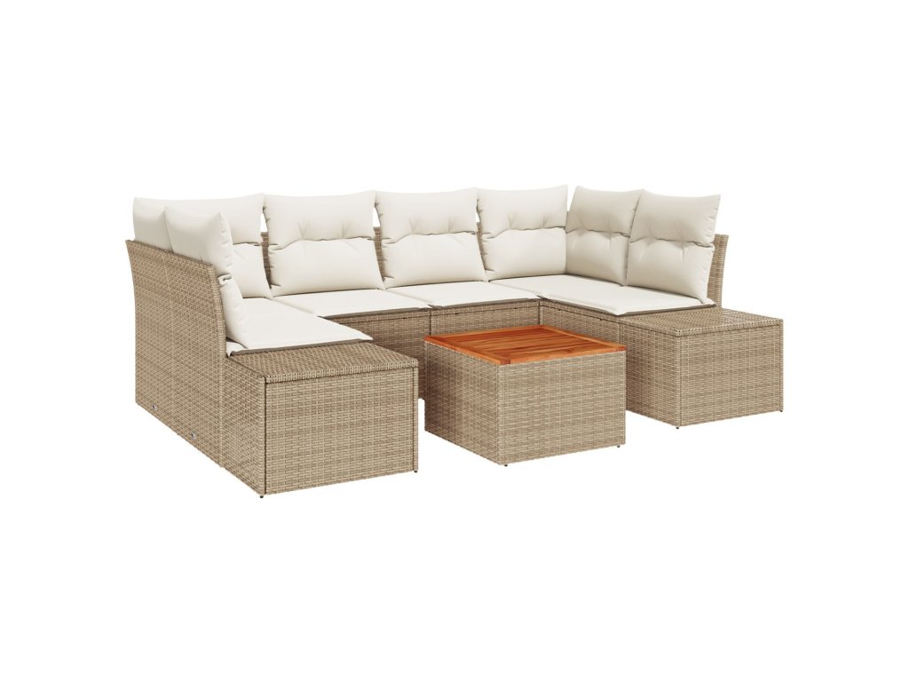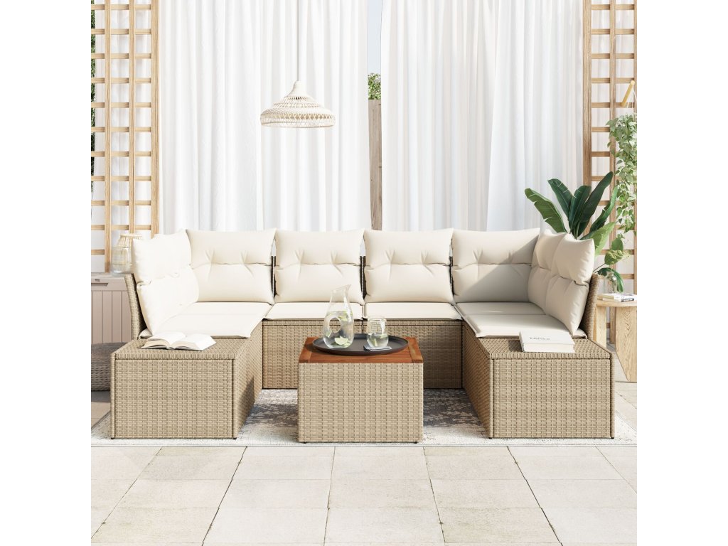 Sada zahradních pohovek s polštářem 7 pcs Béžová Poly ratan