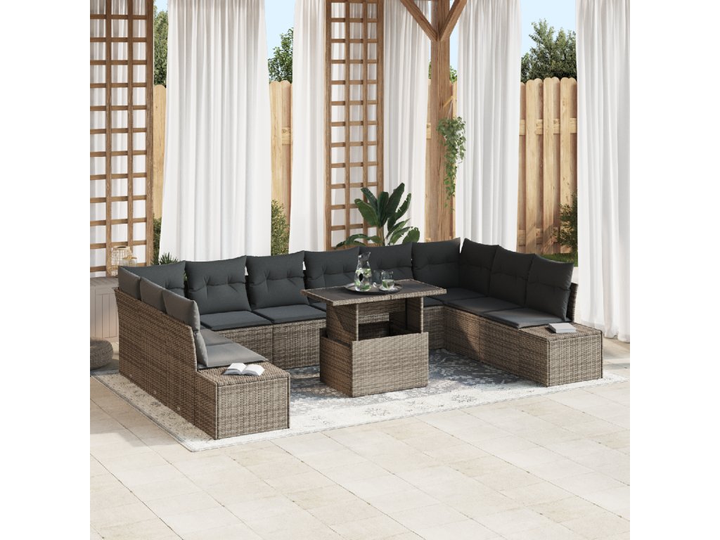 Sada zahradních pohovek s polštářem s úložištěm 11 pcs Šedá