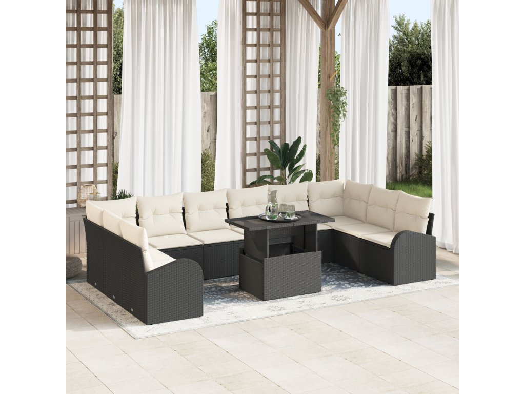 Sada zahradních pohovek 11 pcs Černá a krémová polyratan