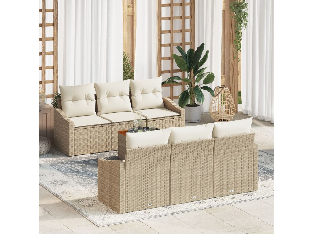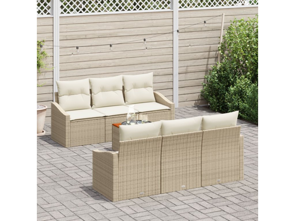 Sada zahradních pohovek s polštářem 7 pcs Béžová Poly ratan