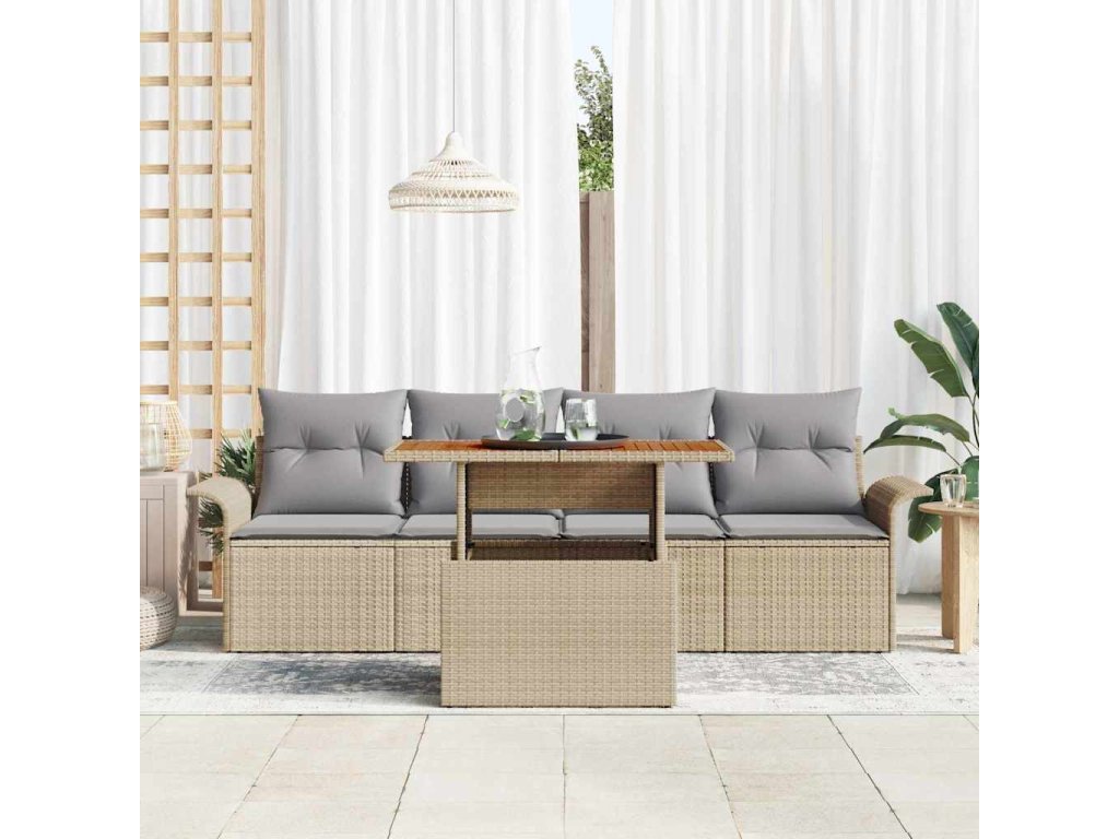 Sada zahradních pohovek s úložištěm 5 pcs Béžová Poly ratan