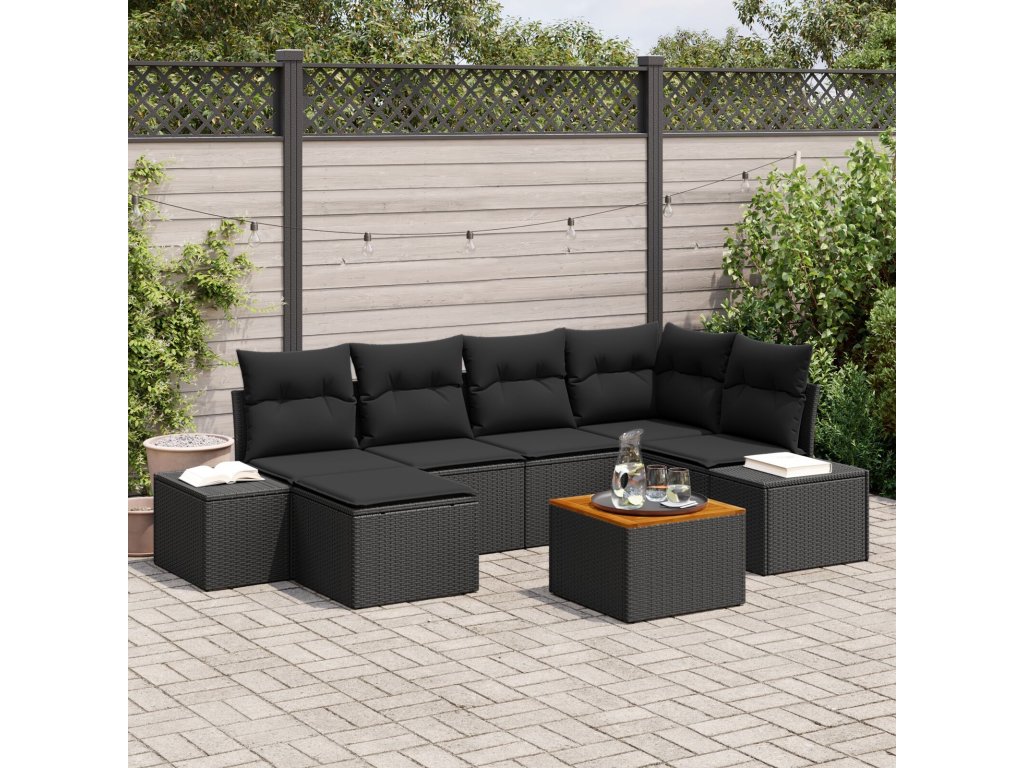 Sada zahradních pohovek s polštářem 7 pcs Černá Poly ratan