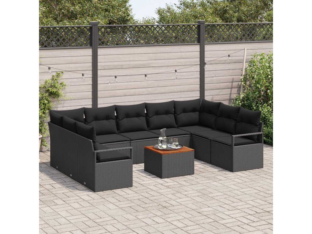 Sada zahradních pohovek s polštářem 10 pcs Černá Poly ratan