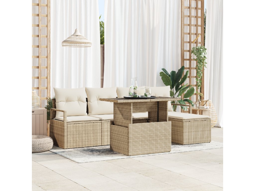 Sada zahradních pohovek s polštářem 6 pcs béžová a krémová