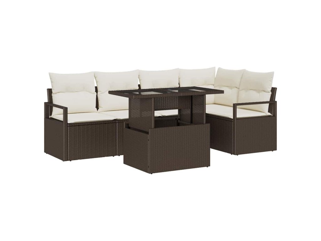 Sada zahradních pohovek s polštářem 6 pcs Hnědá Poly ratan