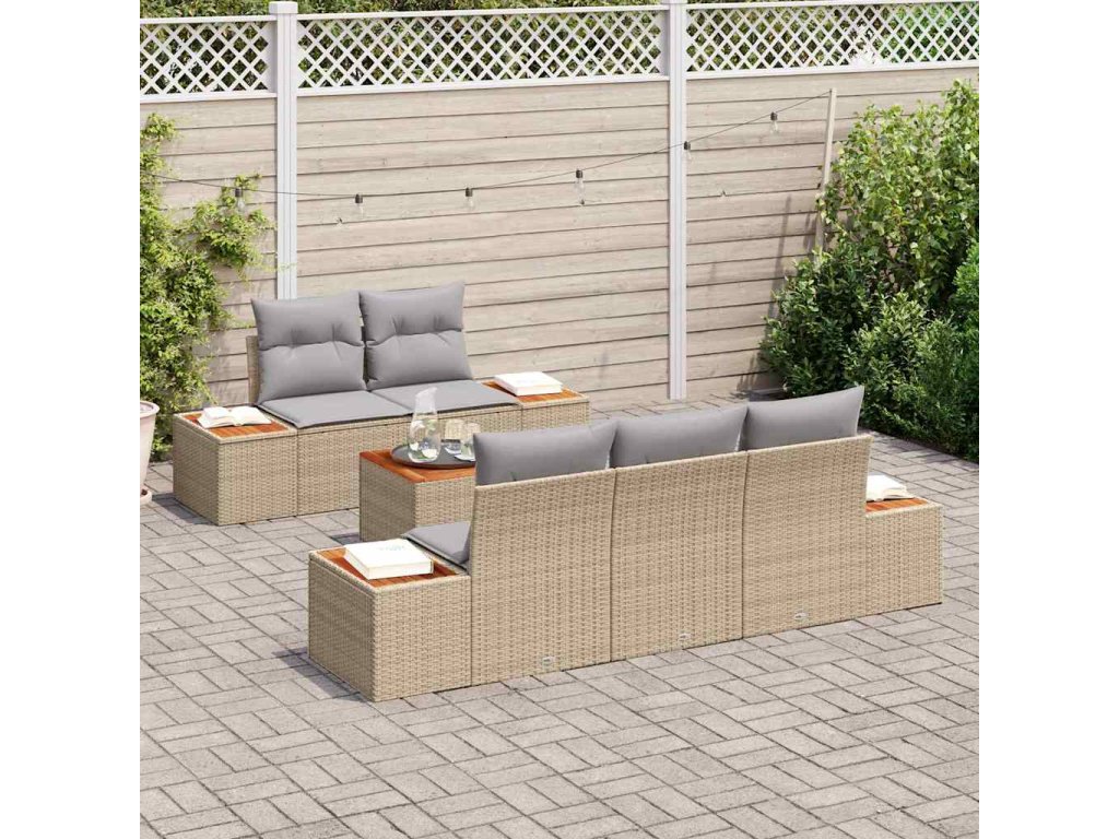 Sada zahradních pohovek s polštářem 6 pcs Béžová Poly ratan