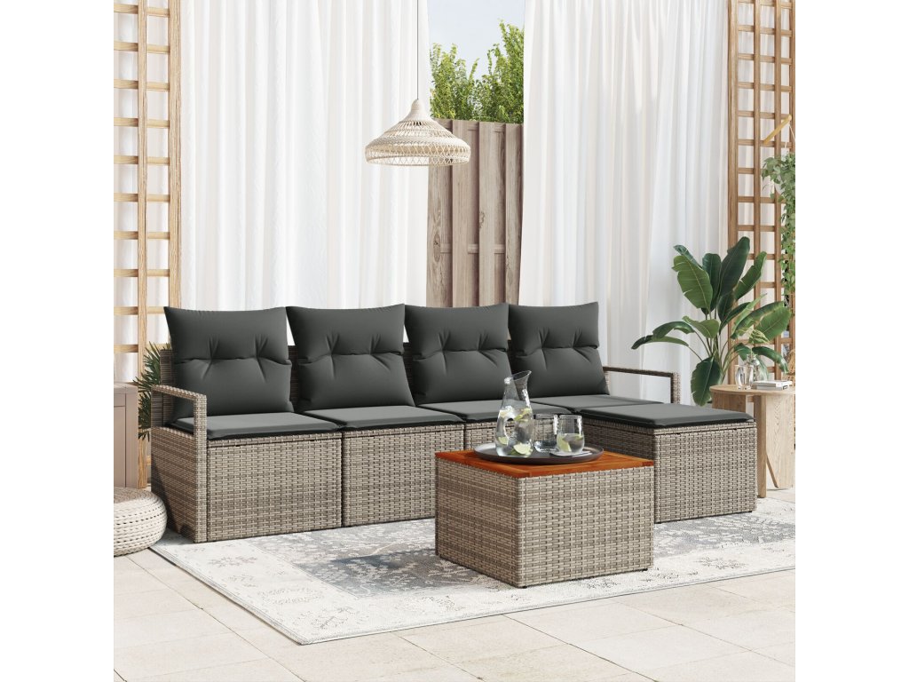 Tento zahradní pohovkový set přináší moderní eleganci do vašich venkovních zahradních a terasových prostor a zvyšuje pohodlí a styl svými promyšleně uspořádanými prvky. Pevný akáciový dřevěný povrch a tkaná textura evokují kouzlo přírody, zatímco poskytují bezproblémovou funkčnost a přizpůsobivost. Navržen pro maximální uvolnění, vyzývá k venkovním konverzacím a relaxaci u stylově moderního pozadí.
