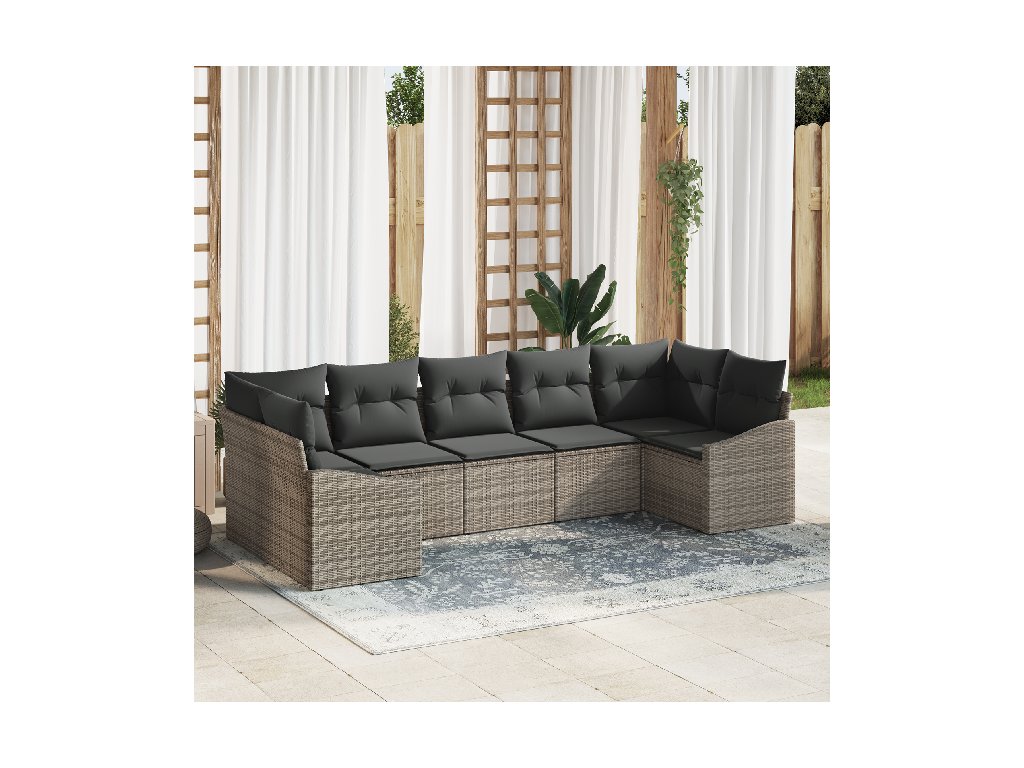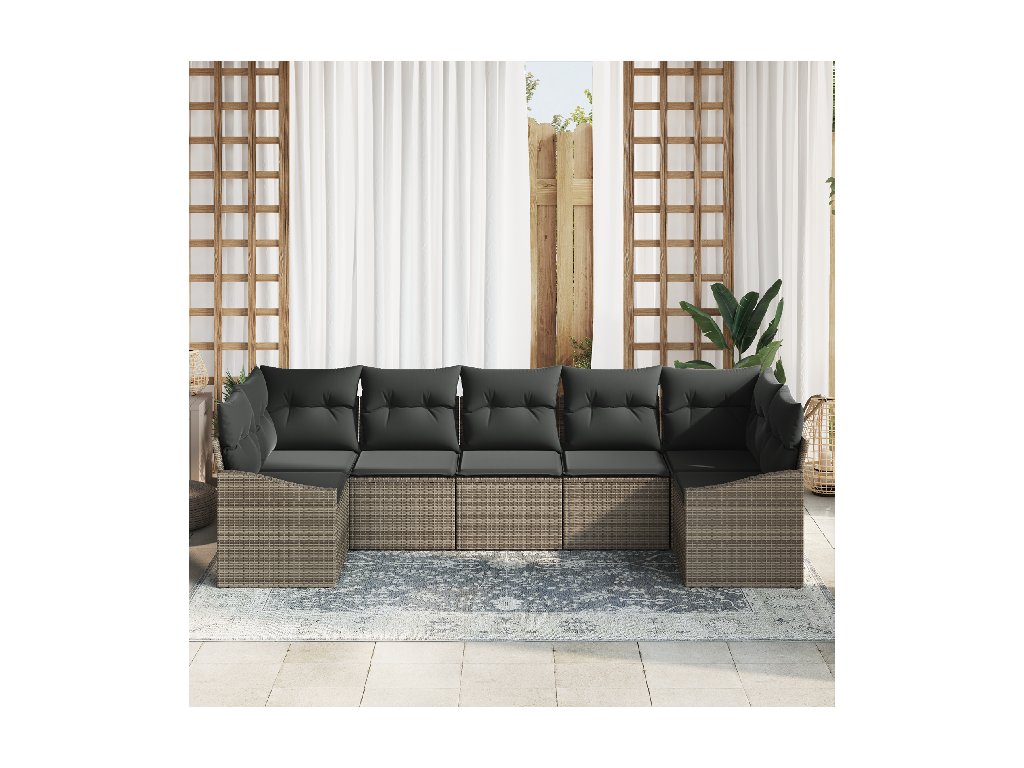 Materiály: Souprava je vyrobená z kvalitního polyratanu, který odolává UV záření a špatnému počasí. Práškově lakovaný ocelový rám má dlouhou životnost a odolnost proti rzi pro venkovní použití. Součásti: Tato všestranná souprava zahrnuje rohové a středové sedačky a arm pohovky, každá s praktickými skrytými úložnými prostory pro udržení pořádku ve vaší venkovní oáze. Vlastnosti / Funkce / Design: Díky modulárnímu designu můžete jednotlivé kusy pohodlně kombinovat a přizpůsobovat svému prostoru nebo vkusu. Zakřivené opěrky rukou a pohodlné sedáky vytvářejí příjemné místo k odpočinku nebo hostování. Doporučené použití: Ideální pro zahrady a terasy, tahle souprava se hodí jak pro komerční, tak pro soukromé venkovní prostory. Ať už pořádáte letní oslavu nebo si užíváte poklidný večer, je navržená pro různé venkovní aktivity. Péče a údržba: Abyste prodloužili její životnost, zakryjte ji, když ji nepoužíváte, aby byla chráněná před počasím. Občasné otření suchým hadříkem stačí k odstranění prachu a udržení čerstvého vzhledu.- Barva: Šedá