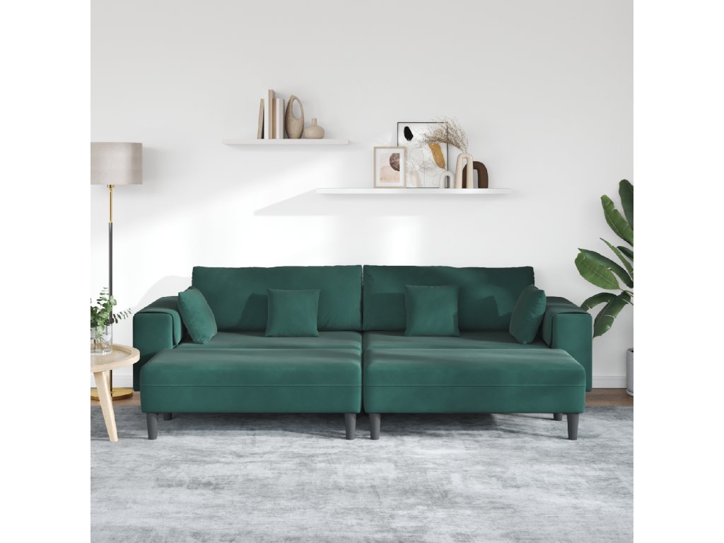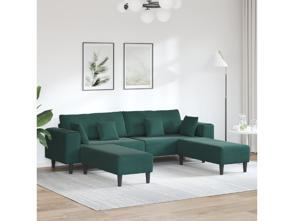 Sametová pohovka s polštářem 3 pcs Tmavě zelená 208 cm samet