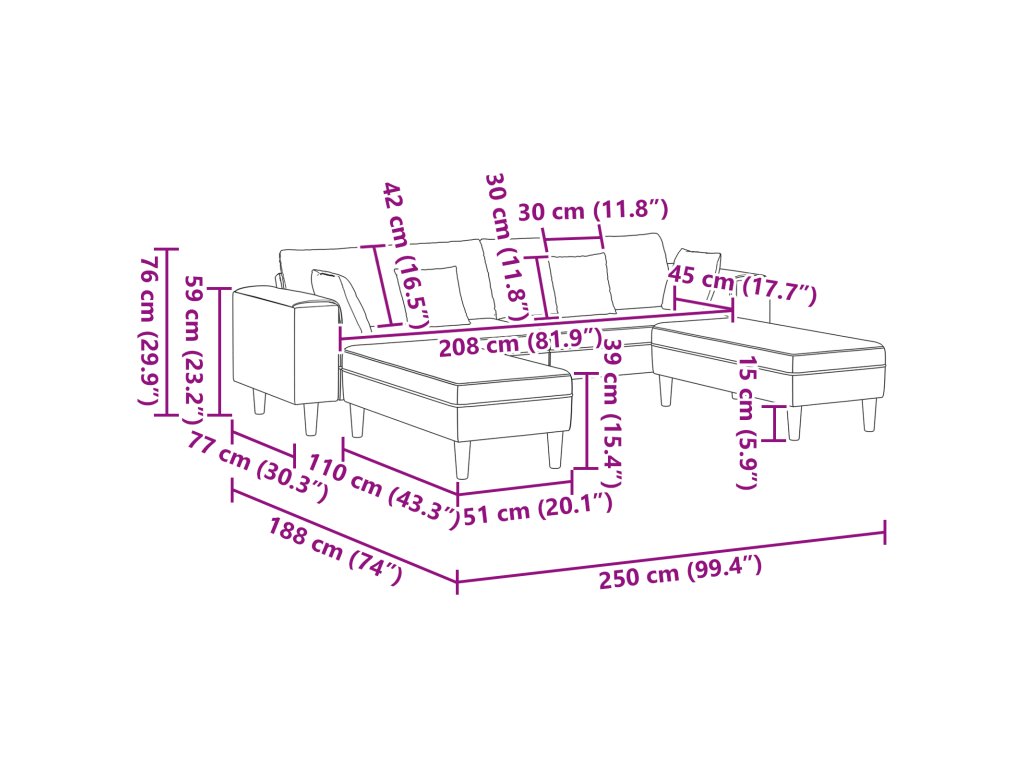 - Šířka sedáku: 208 cm