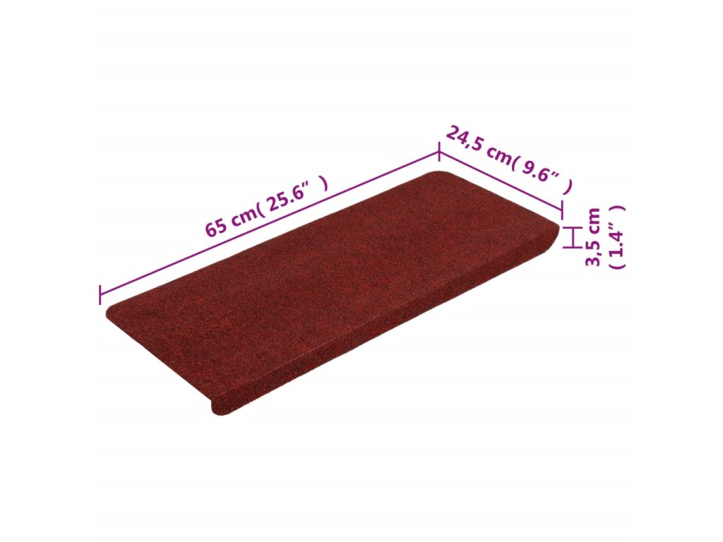 Samolepicí nášlapy na schody 15 ks 65x24,5x3,5 cm červené