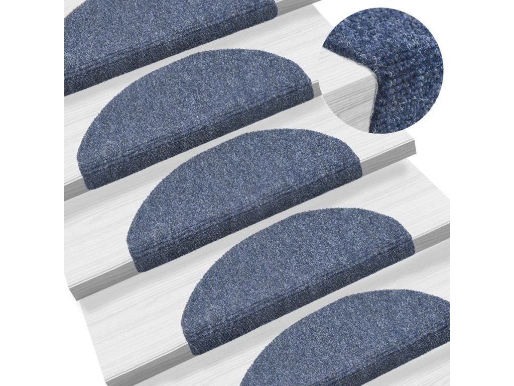 Schodové rohože samolepicí 15 ks 65 x 21 x 4 cm modré, půlkulaté, velké
