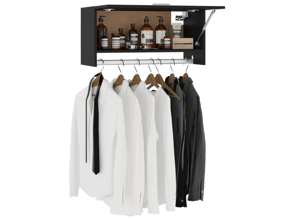 Díky robustní konstrukci je závěsná skříň velmi odolná. Tento organizér na oděvy nabízí velkou přihrádku, kam si můžete uložit vše, co potřebujete. Skříňka je dále vybavena tyčí pro zavěšení kabátů, šatů apod. Díky širokému spektru využití představuje tato funkční skříň univerzální úložné řešení do koupelny, kuchyně nebo prádelny a ve vaší domácnosti se z ní stane jedinečný dekorativní doplněk.