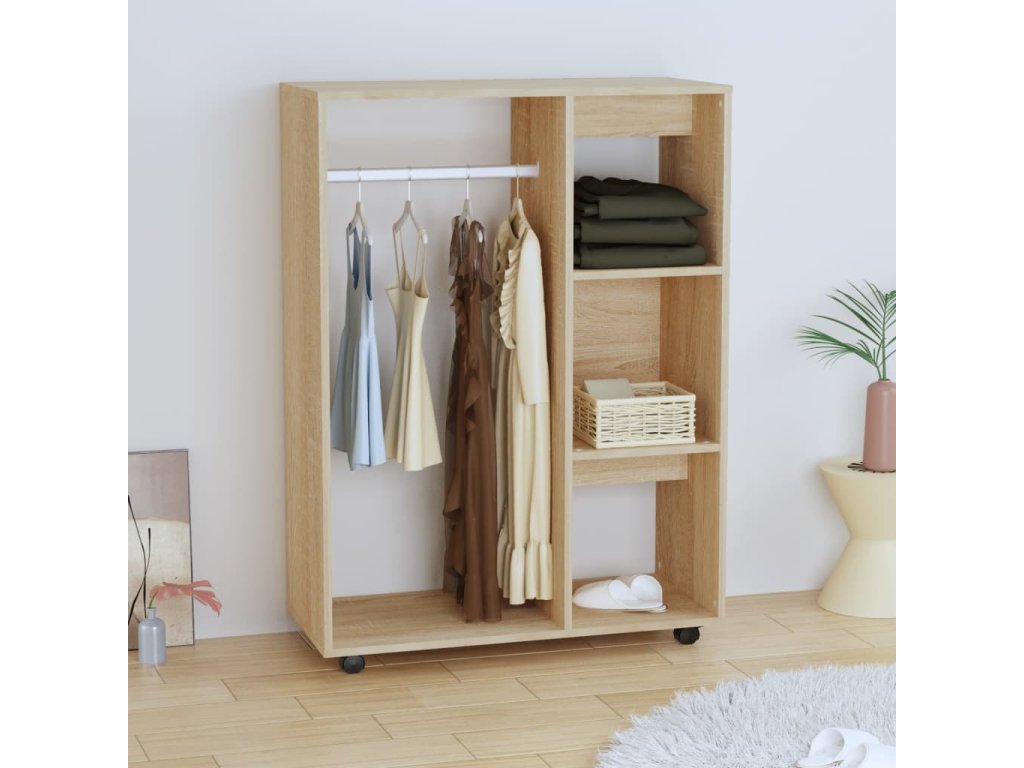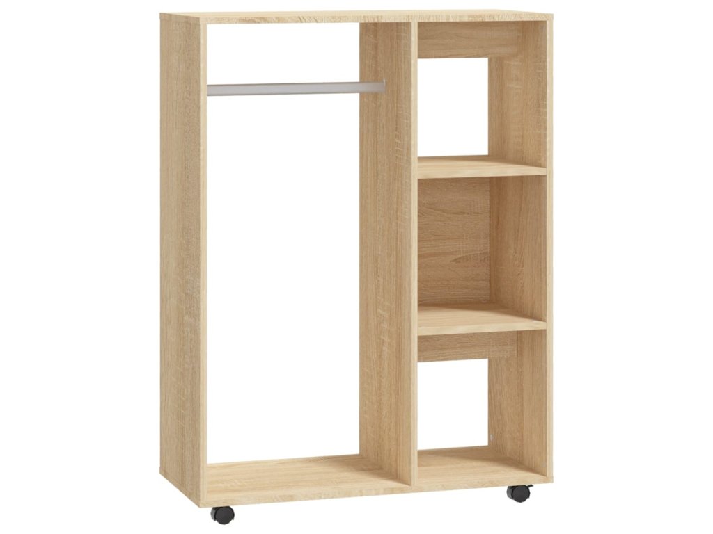Tato úložná skříň je vyrobena z kompozitního dřeva, je proto odolná a robustní a skvěle vám poslouží pro uložení a organizaci vašeho oblečení. Pomocí koleček ve spodní straně skříně ji můžete snadno přemístit na požadované místo. Tento šatník má velkou otevřenou přihrádku a 3 boční police, kde budete mít vše potřebné hezky po ruce. Navíc se snadno čistí vlhkým hadříkem.