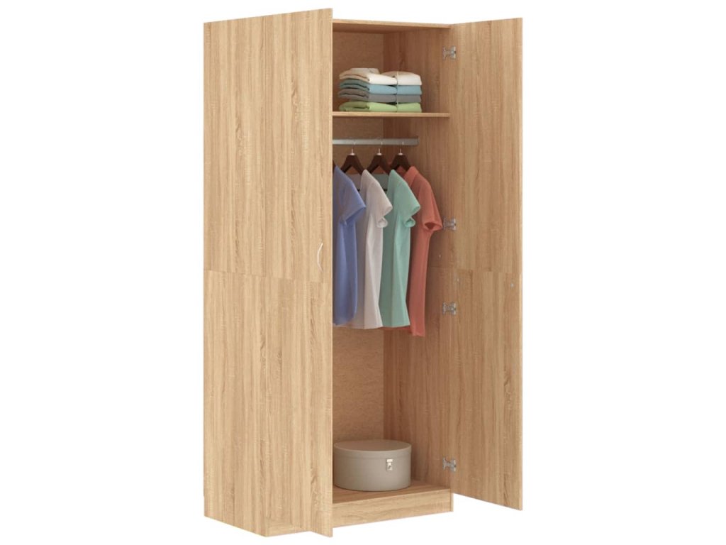 Šatník je vyrobený z prémiového kompozitního dřeva, které je zárukou pevnosti, odolnosti a dlouhé životnosti. Uvnitř se nachází velká přihrádka s šatní tyčí. Najdete zde tudíž spoustu prostoru jak pro zavěšení delších oděvů, tak k uložení poskládaného oblečení, jako jsou svetry či džíny, a menších doplňků, například klobouků, kabelek atd.