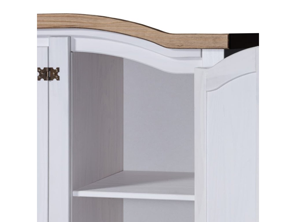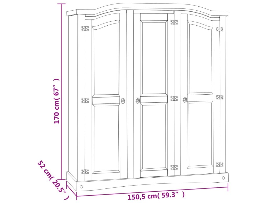 Tato vysoce kvalitní dřevěná šatní skříň je vyrobená v mexickém stylu Corona. Voskované borové dřevo a prvky z černého kovu propůjčují šatní skříni mexický šarm, který dokonale zkompletuje zařízení vaší ložnice, obývacího pokoje nebo salónku.