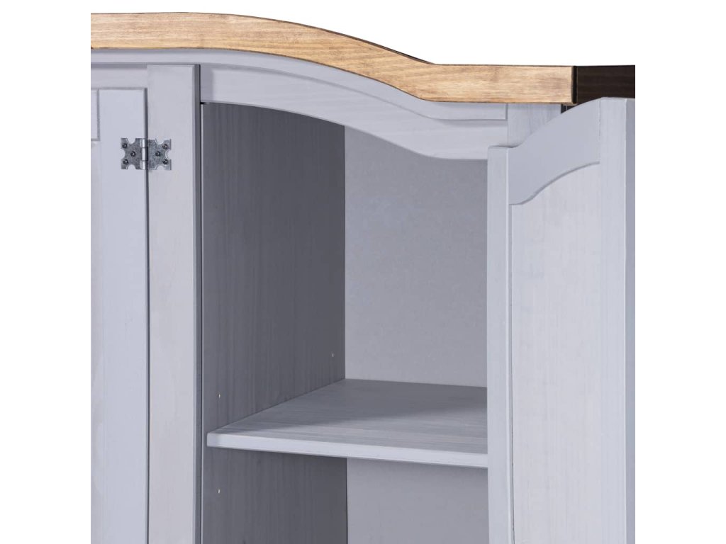 Tato vysoce kvalitní dřevěná šatní skříň je vyrobená v mexickém stylu Corona. Voskované borové dřevo a prvky z černého kovu propůjčují šatní skříni mexický šarm, který dokonale zkompletuje zařízení vaší ložnice, obývacího pokoje nebo salónku.