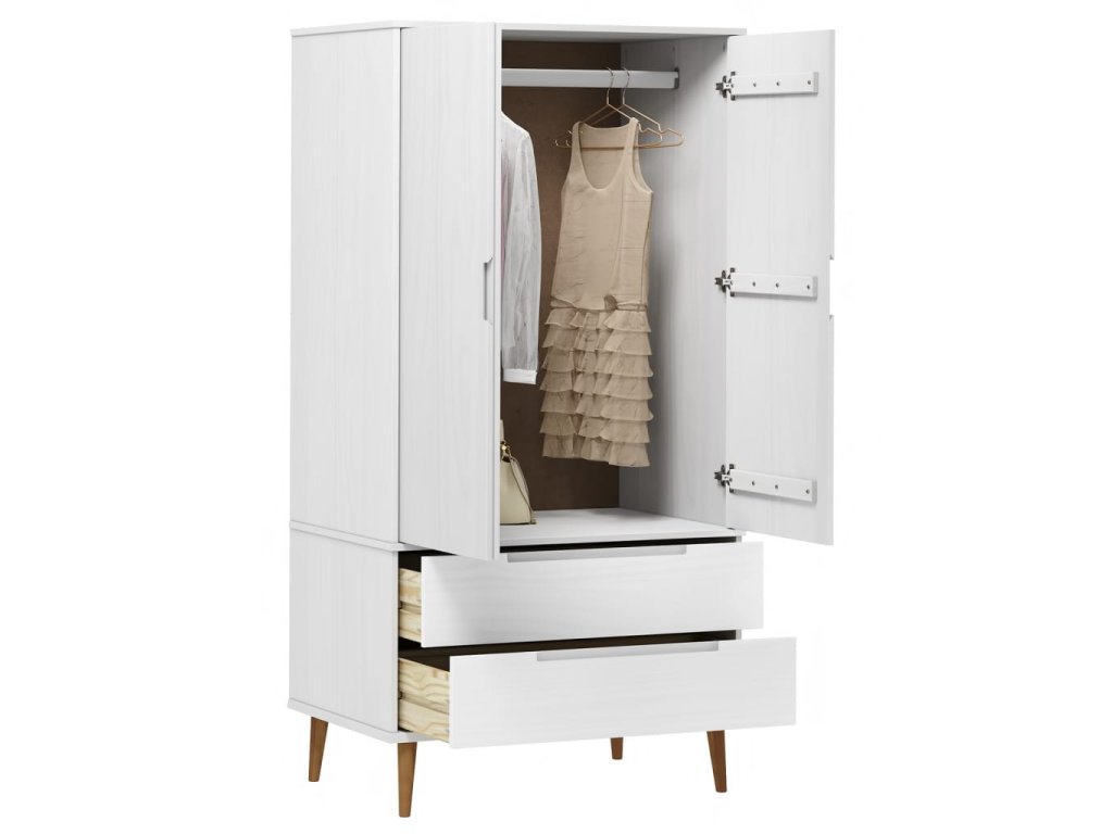 Šatní skříň MOLDE bílá 90 x 55 x 175 cm masivní borové dřevo