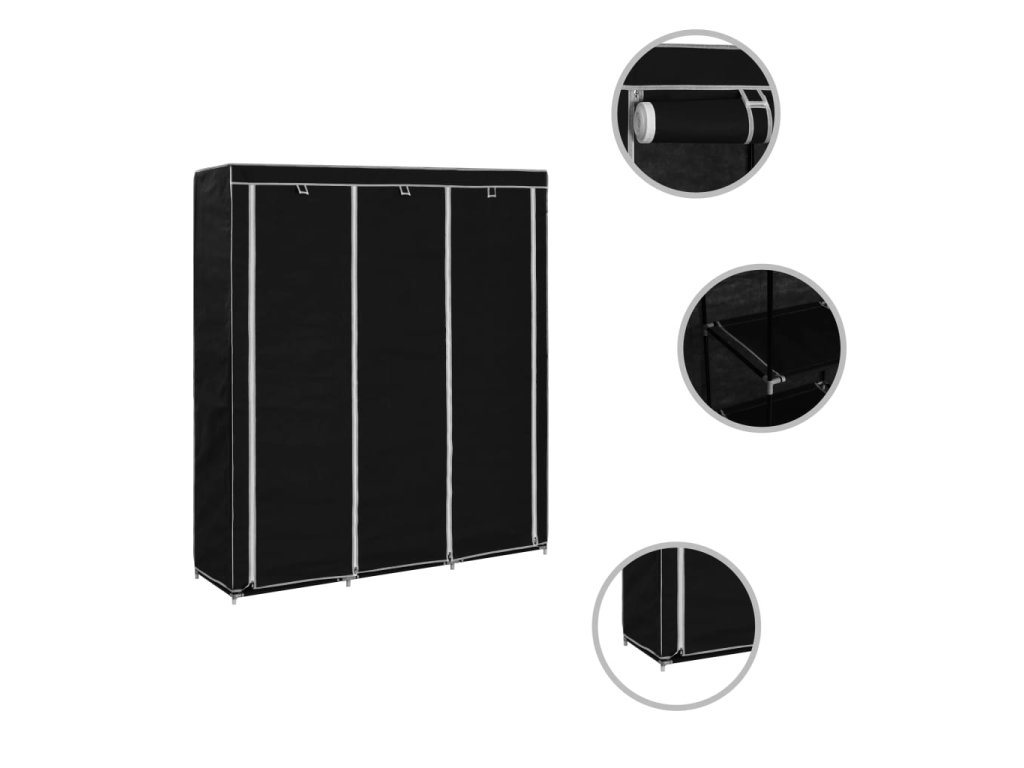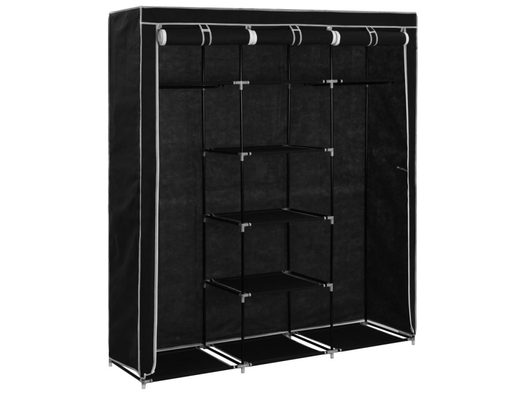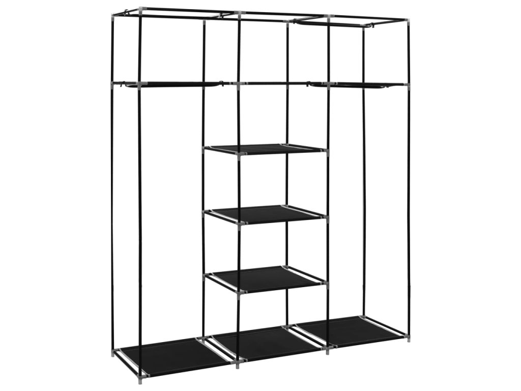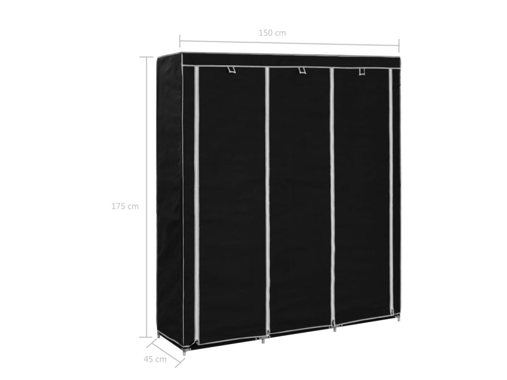 Šatní skříň s přihrádkami a tyčemi černá 150x45x175 cm textil