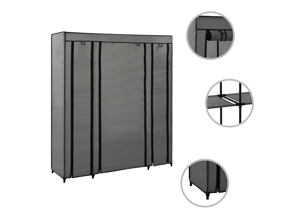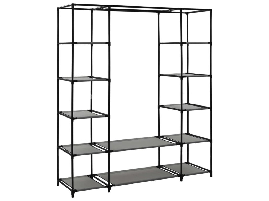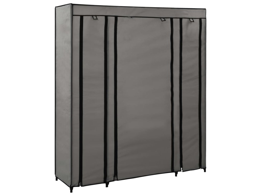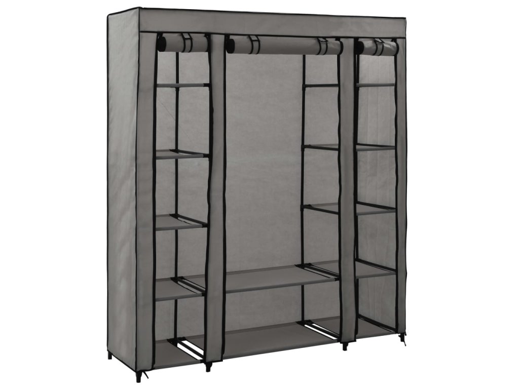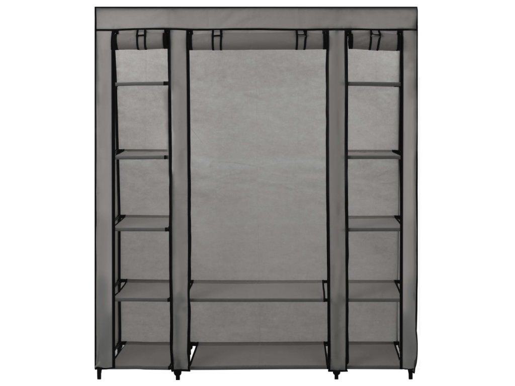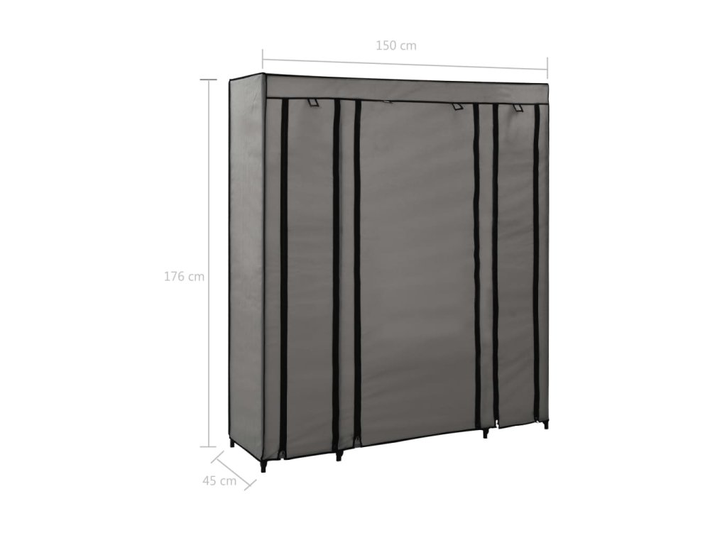 Šatní skříň s přihrádkami a tyčemi šedá 150x45x176 cm textil