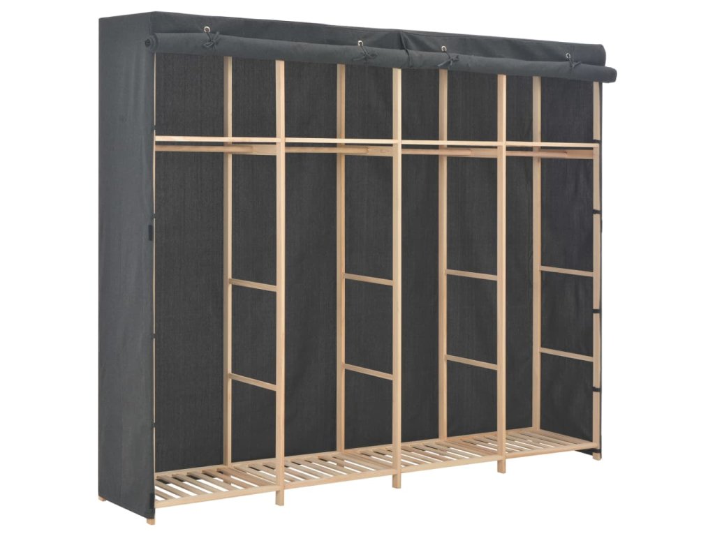 Organizér na oblečení má odolný dřevěný rám a celou řadu otevřených přihrádek. Látkový kryt skryje vaše oblečení před pohledy zvenku a zároveň je ochrání před prachem. Sestavení naší textilní šatní skříně je snadné.