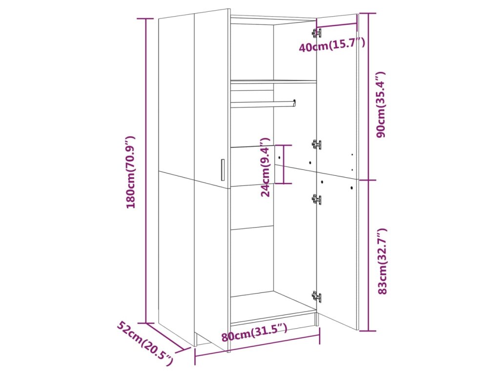 - Rozměry: 80 x 52 x 180 cm (Š x H x V)