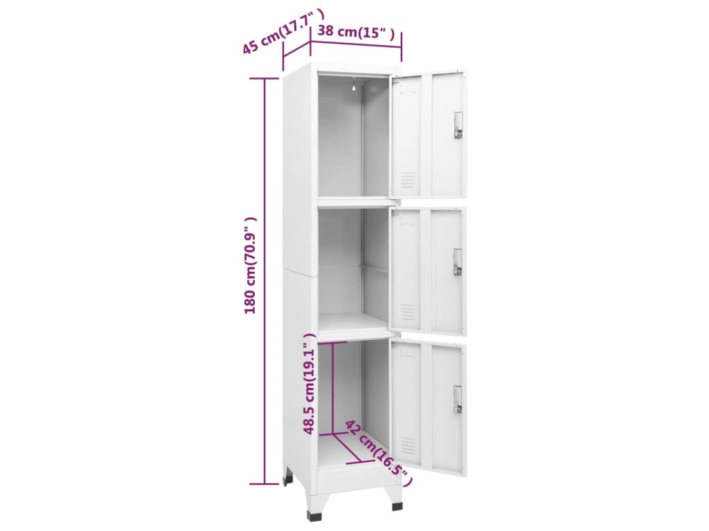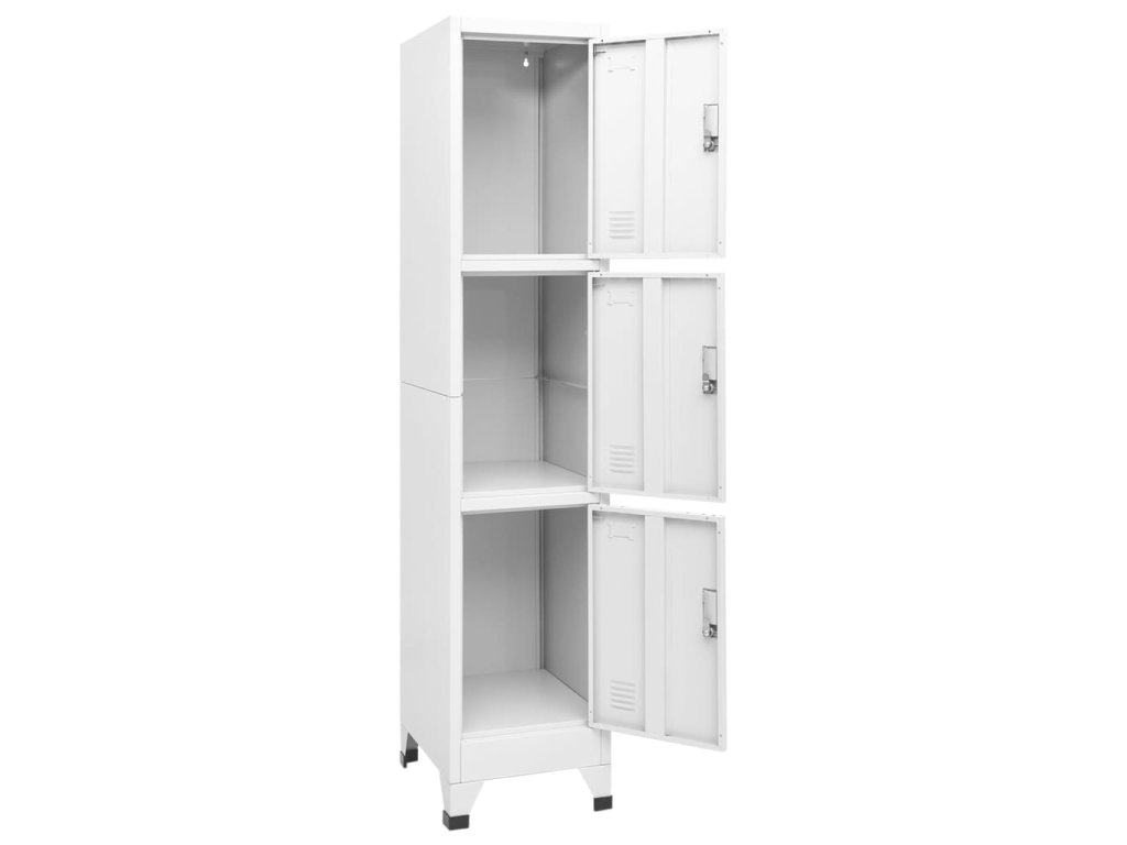 Se 3 přihrádkami s uzamykatelnými dveřmi má tato skříňka dostatek úložného prostoru pro uložení oblečení a dalších věcí. Každá přihrádka je vybavena držákem na jmenovku. Uzamykatelná skříňka je vyrobena z vysoce kvalitní oceli, proto má dlouhou životnost a snadno se čistí. Sestavení je opravdu snadné.