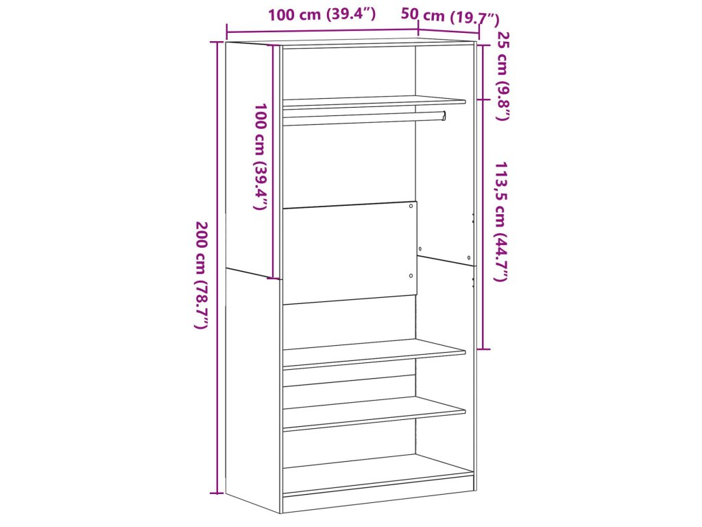 - Celkové rozměry: 100 x 50 x 200 cm (D x Š x V)