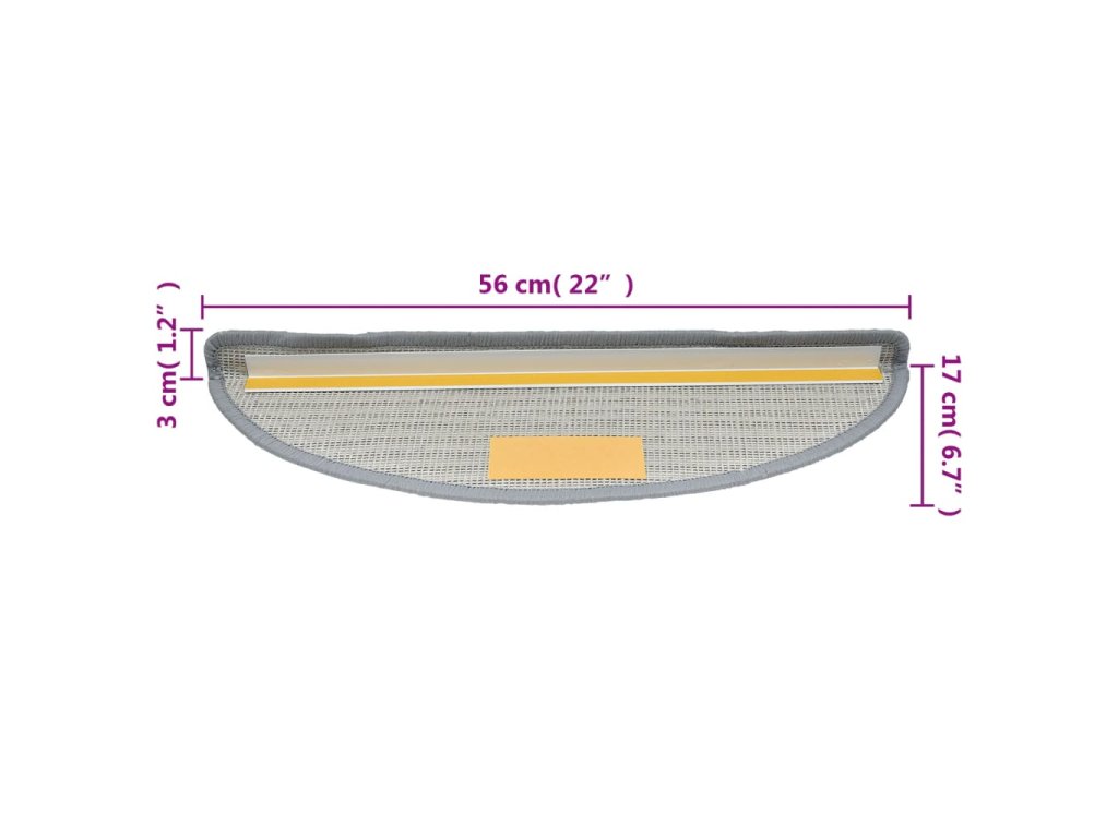 Schodové rohože 10 ks 56 x 17 x 3 cm šedé, půlkulaté