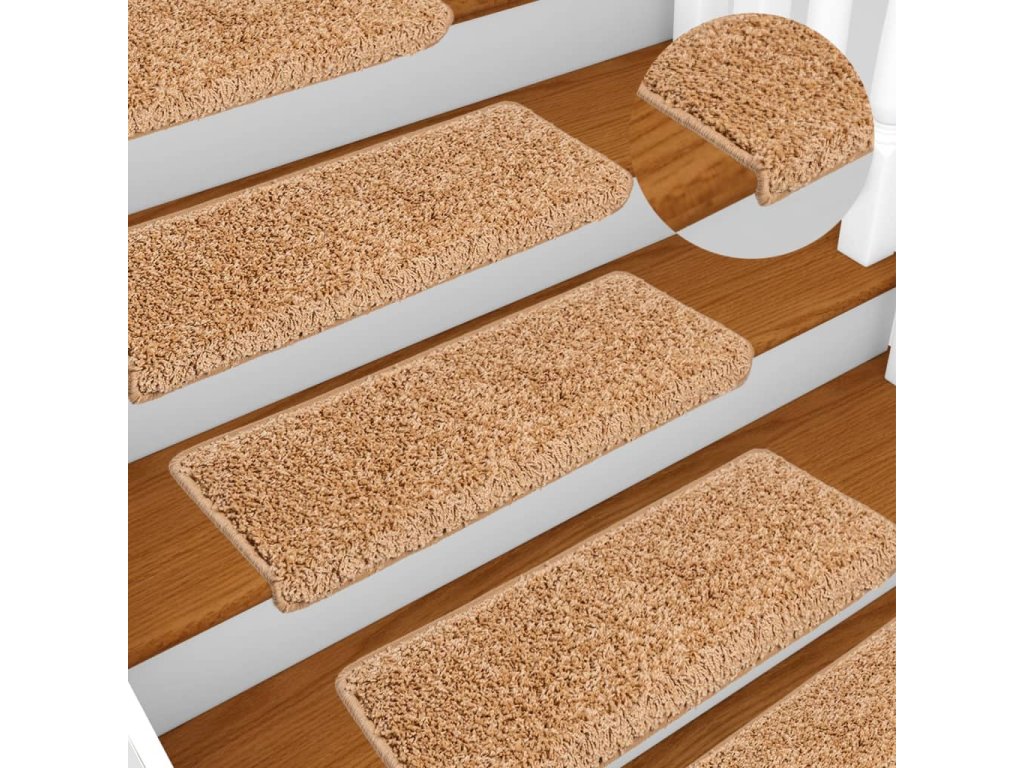 Schodové rohože 10 ks 65 x 21 x 4 cm béžové s obdélníkovým okrajem