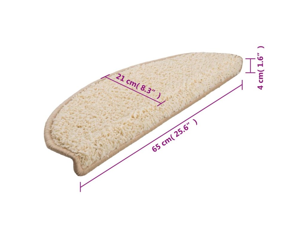 Schodové rohože 10 ks 65 x 21 x 4 cm krémové, půlkulaté, velké