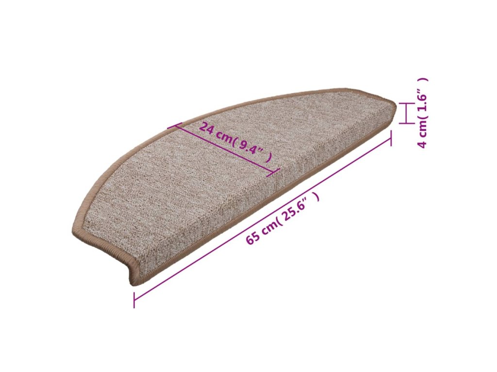 Schodové rohože 10 ks 65 x 24 x 4 cm světle hnědé, půlkulaté, velké