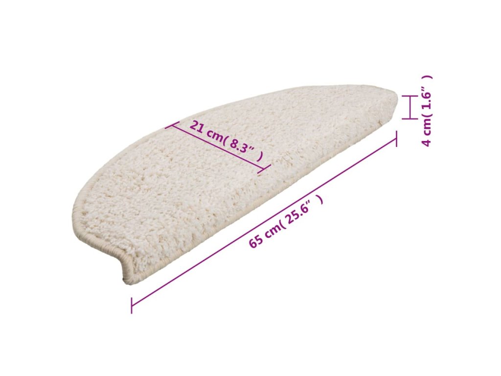 Schodové rohože 15 ks 65 x 21 x 4 cm bílé, půlkulaté, velké