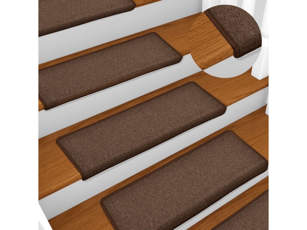 Schodové rohože 15 ks 65 x 21 x 4 cm hnědé s obdélníkovým okrajem