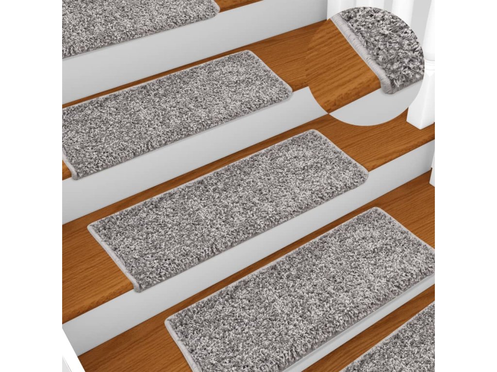 Schodové rohože 15 ks 65 x 21 x 4 cm šedé s obdélníkovým okrajem