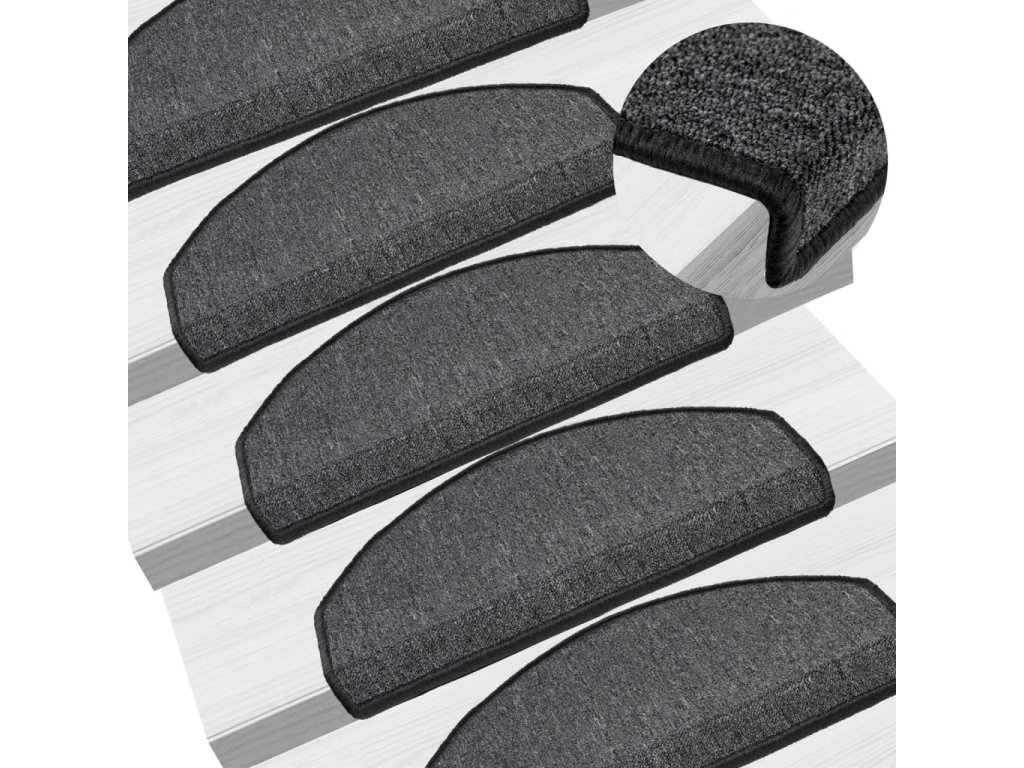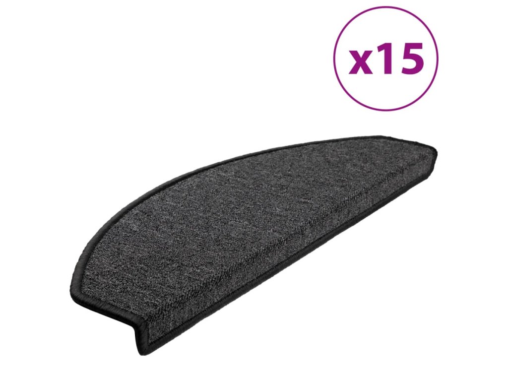 Schodové rohože 15 ks 65 x 24 x 4 cm antracitové, půlkulaté, velké
