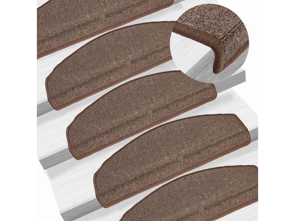 Schodové rohože 15 ks 65 x 24 x 4 cm kávově hnědé, půlkulaté, velké