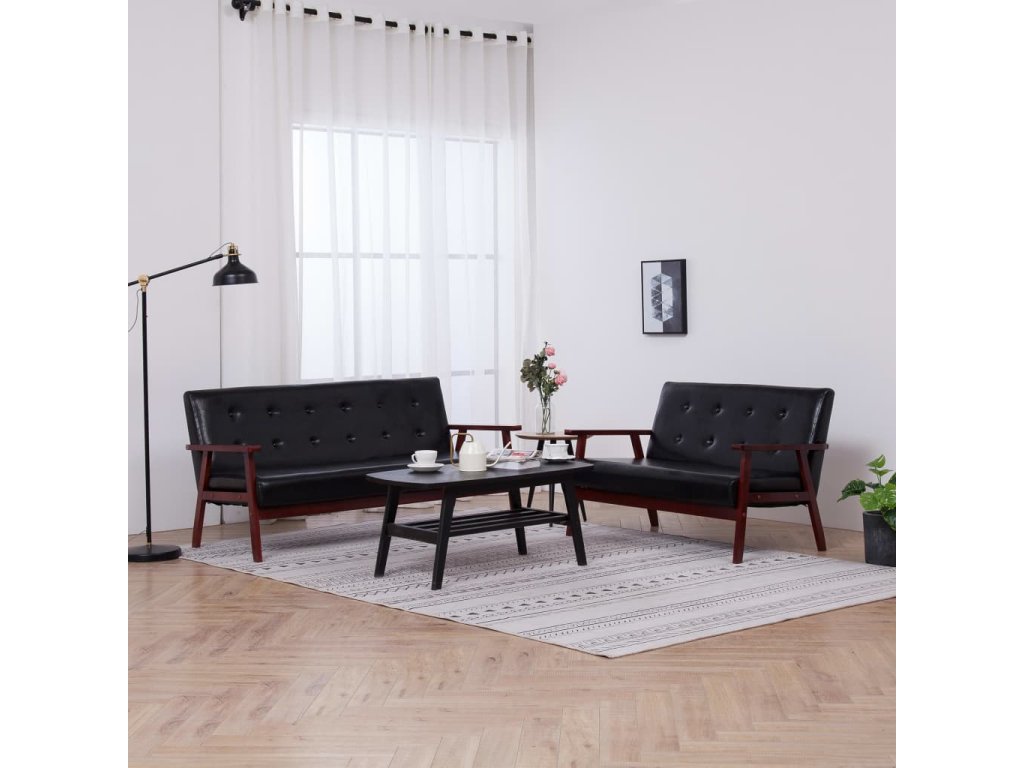 Sedací souprava 2 ks černá umělá kůže
