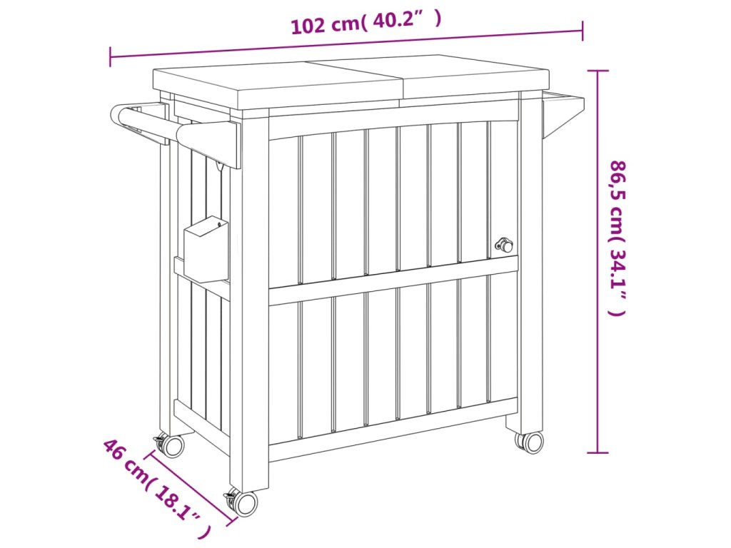 Tento pojízdný servírovací vozík s kbelíkem na led o objemu 80 l je ideální pro venkovní setkání. Kromě toho jej lze použít jako přípravný prostor nebo odkládací stolek.