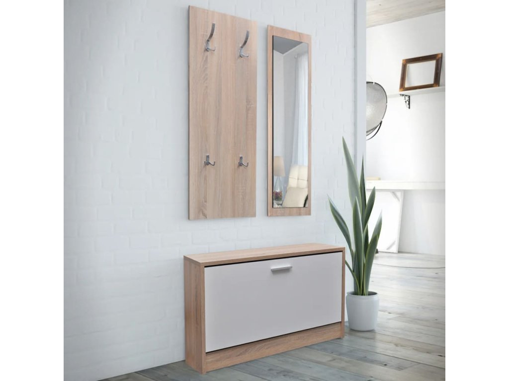 Ve stylově designovaném botníku je velká přihrádka se střední přepážkou, do které si snadno zorganizujete svou obuv, takže už nikdy nezakopnete o boty rozházené po podlaze. Věšák na kabáty je vybavený 4 robustními kovovými háčky na kabáty. Zrcadlo je dostatečně velké, abyste se mohli před odchodem z domu dobře upravit.