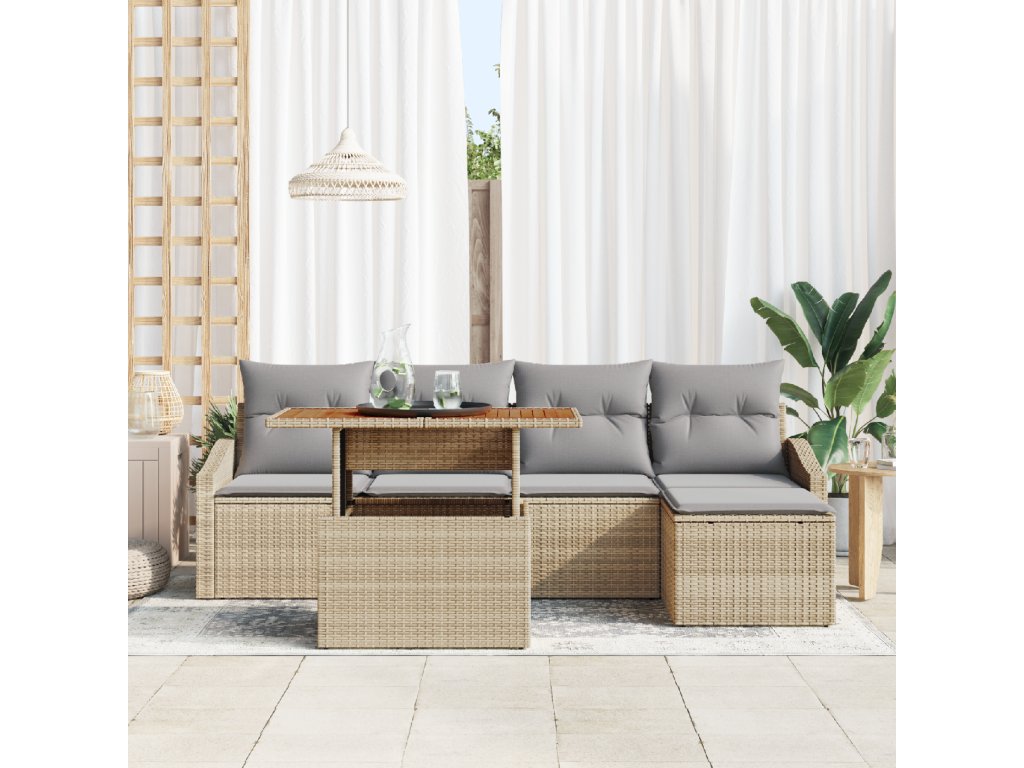Zahradní jídelní souprava s polštářem 6 pcs Beige a šedá