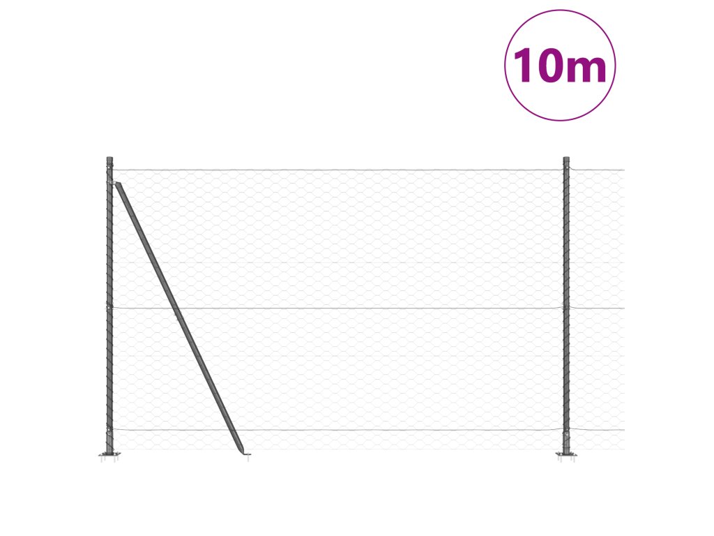 Plotový sloupek. Šedá 10 x 1,5 m (50 mm síť) Ocel a PVC