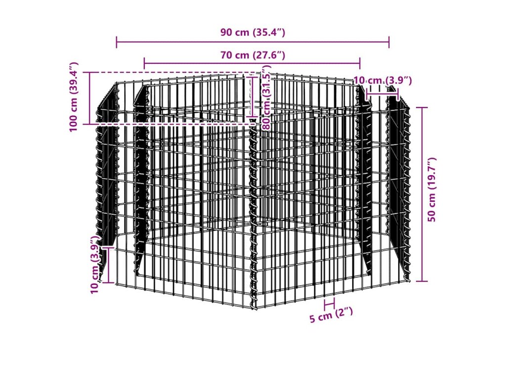 Šestihranný gabionový vyvýšený záhon 100 x 90 x 50 cm