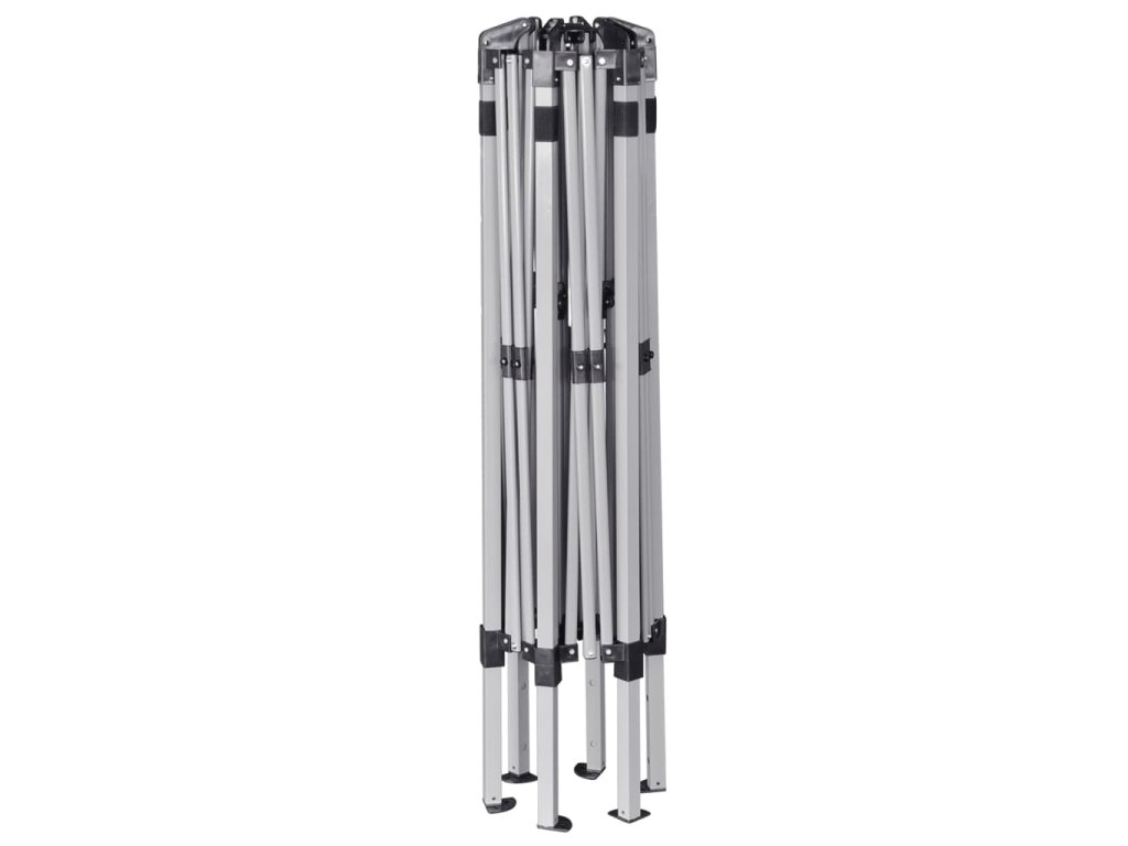 Tento rozkládací stan má velmi odolný ocelový rám s práškovým nástřikem a bytelnou šestiúhelníkovou konstrukci a je celkově velmi robustní a vhodný pro dlouholeté používání. Jeho střecha je vyrobená z polyesterové látky s vrstvou PA a je voděodolná. Součástí je i 6 stěn ze síťoviny, které nejen že se dají kompletně uzavřít dvojitými zipy, ale také je možné je připevnit ke sloupkům vázacími lanky (součástí balení) pro snadný přístup a cirkulaci vzduchu.