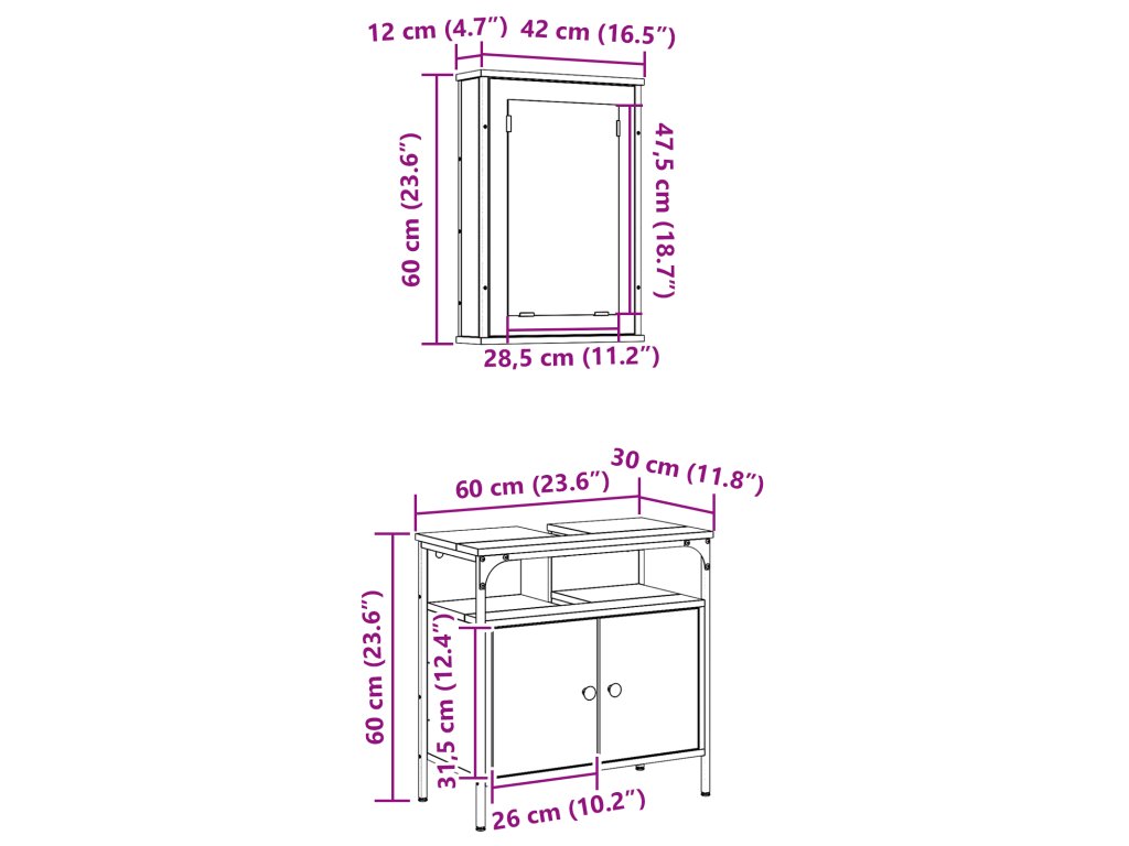 - 1 x Skříňka pod umyvadlo: 60 x 30 x 60 cm (D x Š x V)