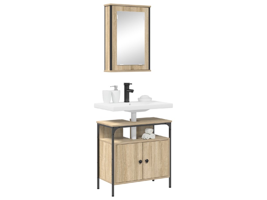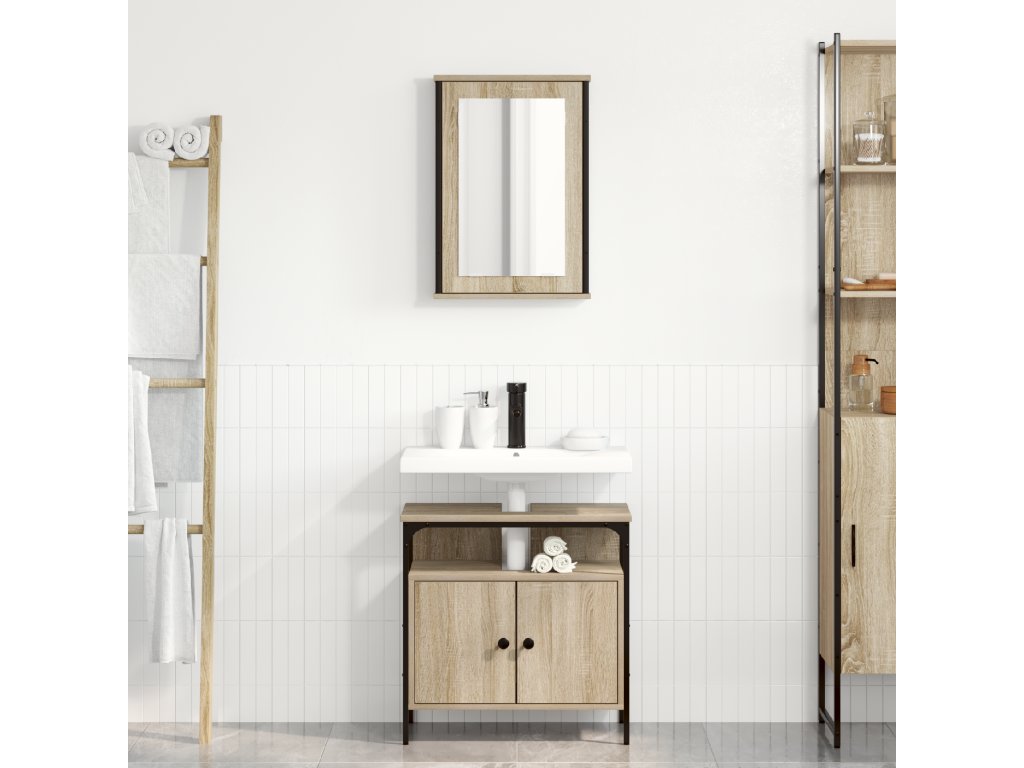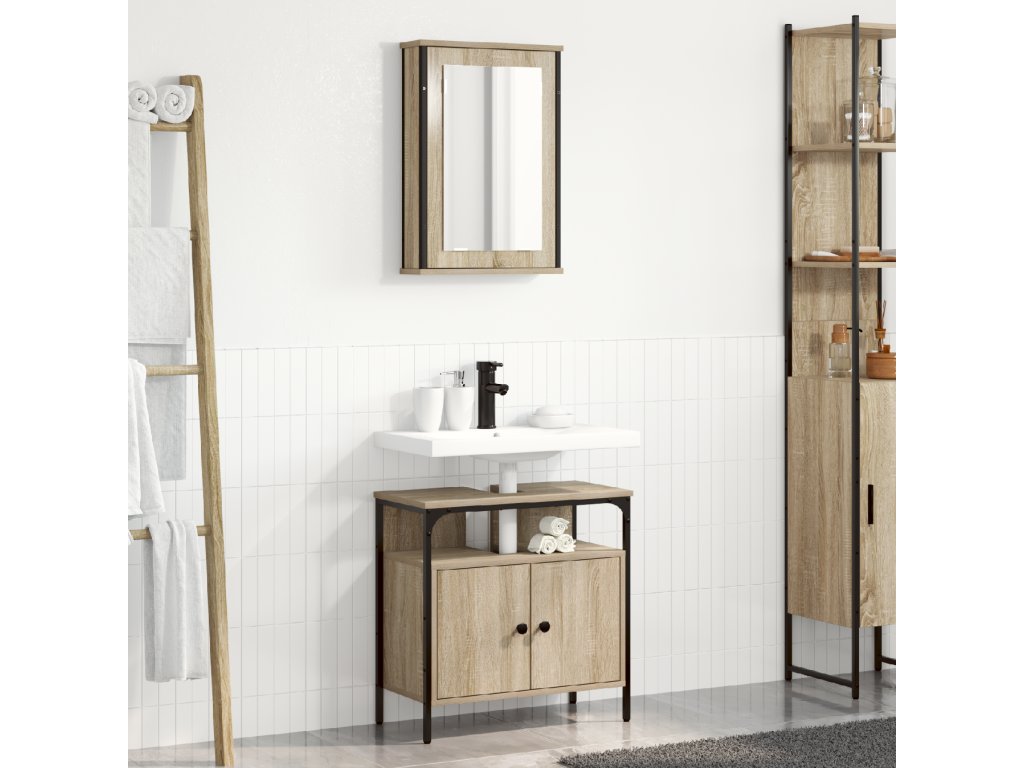 Tato moderní koupelnová skříňka spojuje funkčnost se stylem a hodí se do každého moderního uspořádání koupelny. Set obsahuje skříňku se zrcadlem a umyvadlovou skříňku, obojí s důrazem na jednoduchost a čisté linie. Teplé hnědé tóny dřeva dodávají prostoru útulnost, takže koupelna vypadá moderně a přívětivě. Ať už vylepšujete malou koupelnu, nebo hledáte soulad do většího prostoru, tenhle set splní vaše očekávání.