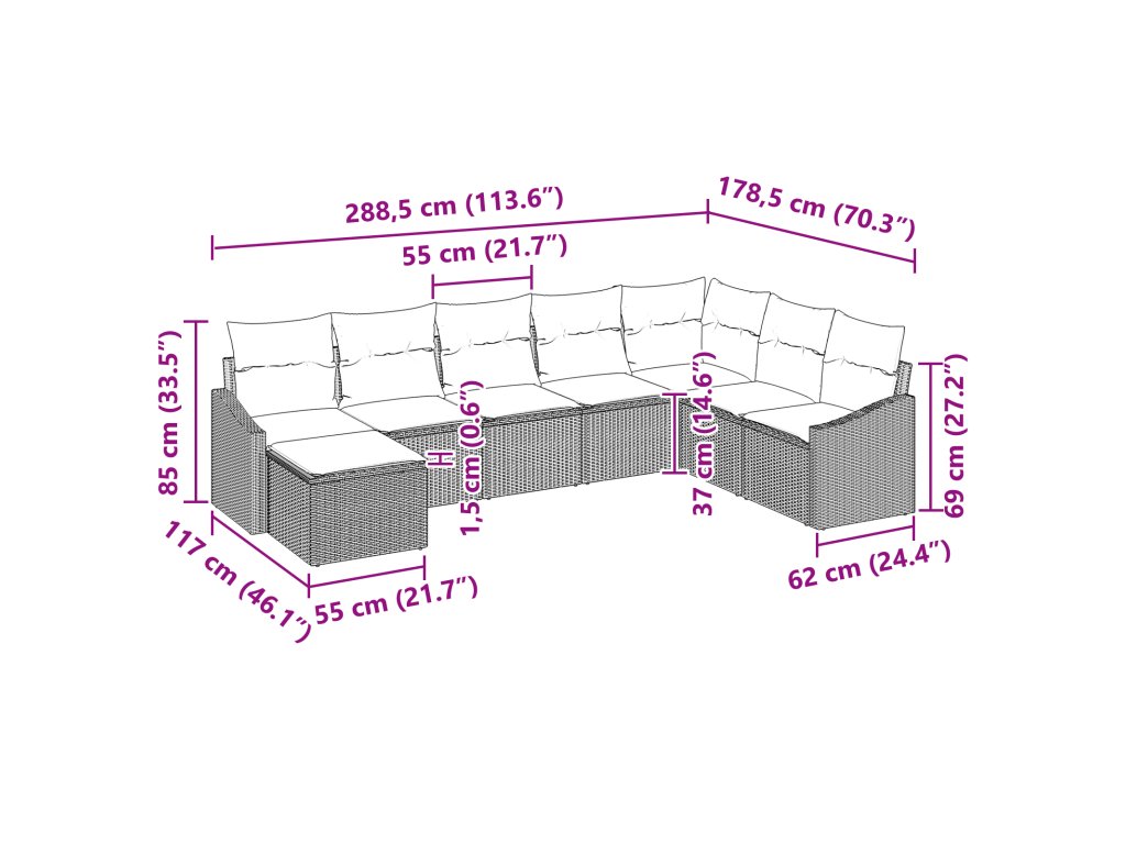 Set pohovek s polštářem 8 pcs Světle šedá polyratan